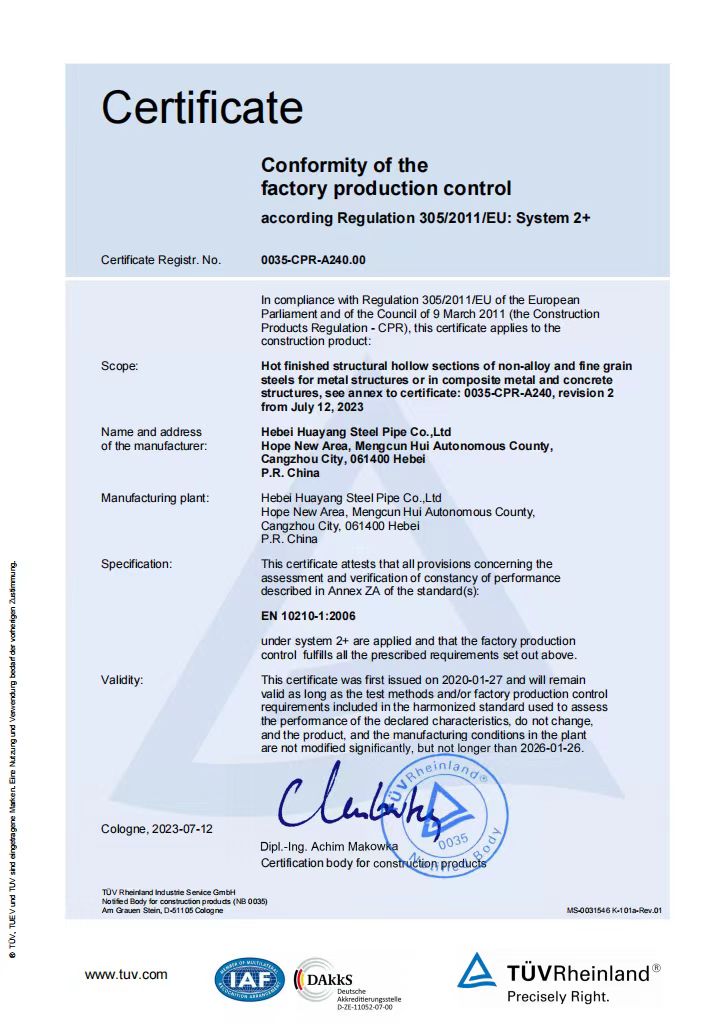 河北華洋鋼管有限公司公司創建于2005年,注冊資金5億元,公司占地面積1000余畝,固定資產12億元,年銷售收入近100億元,現有員工600余人。“華洋牌"高頻直焊鋼管被評為“河北省名牌產品”,年生產能力可達260萬噸,2024年河北華洋鋼管有限公司榮獲河北省百強民營企業(69位),河北省百強制造業(57位)榮譽稱號。